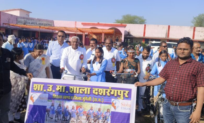 शासकीय उच्चतर माध्यमिक विद्यालय दशरंगपुर में सरस्वती साइकिल योजना के तहत छात्राओं को वितरित की गई साइकिलें