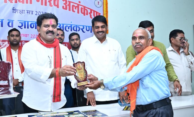 कवर्धा, 5 सितंबर 2025। भारत के पूर्व राष्ट्रपति डॉ. सर्वपल्ली राधाकृष्णन की जयंती पर मनाए जा रहे शिक्षक दिवस के अवसर पर कवर्धा में मुख्यमंत्री शिक्षा गौरव अलंकरण सम्मान समारोह का भव्य आयोजन किया गया। स्वामी आत्मानंद शासकीय उत्कृष्ट अंग्रेजी माध्यम विद्यालय रानी दुर्गावती चौक में आयोजित इस कार्यक्रम में उप मुख्यमंत्री श्री विजय शर्मा मुख्य अतिथि के रूप में शामिल हुए। समारोह में सितंबर 2024 से अगस्त 2025 के बीच सेवानिवृत्त हुए 70 शिक्षकों को शाल-श्रीफल और प्रशस्ति पत्र देकर सम्मानित किया गया। साथ ही हाईस्कूल एवं हायर सेकेंडरी परीक्षा सत्र 2024-25 में 100 प्रतिशत परिणाम देने वाले 20 विद्यालयों के प्राचार्यों का भी अभिनंदन किया गया। कार्यक्रम में जिला पंचायत अध्यक्ष श्री ईश्वरी साहू, उपाध्यक्ष श्री कैलाश चंद्रवंशी, जिला पंचायत सभापति श्री रामकुमार भट्ट, श्री लोकचंद साहू, पार्षद श्री अजय ठाकुर, सतविंदर पाहुजा, श्री सुरेश दूबे, श्री आदित्य श्रीवास्तव सहित जनप्रतिनिधि उपस्थित थे।